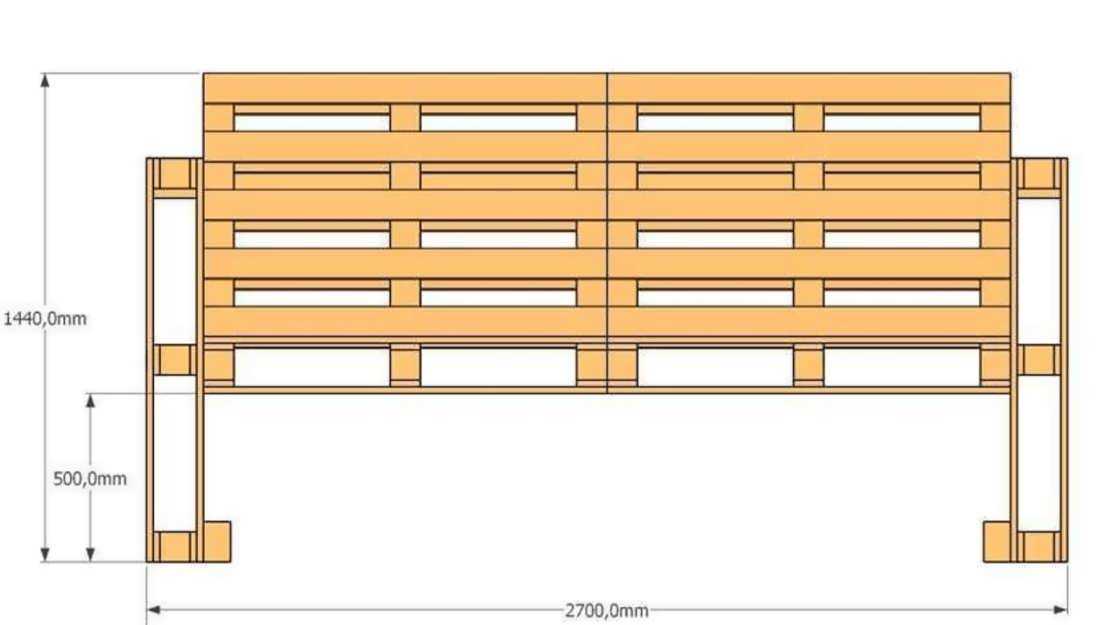 Чертежи и схема скамейки из поддонов