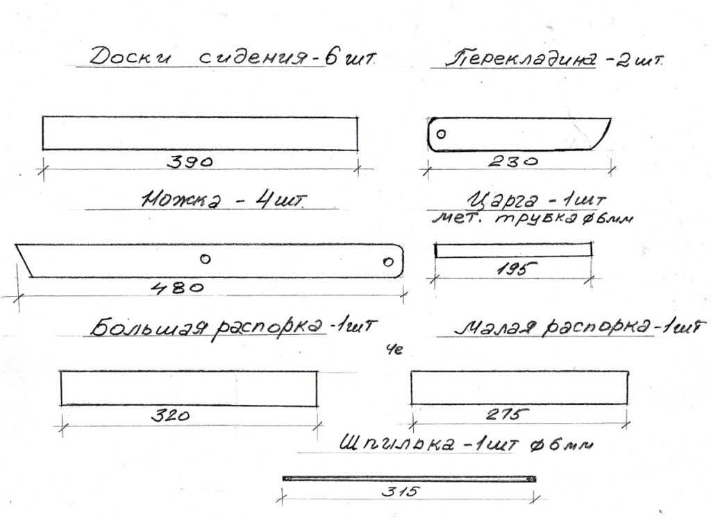 Кладем перед собой чертеж будущего стула, и приступаем к изготовлению деталей. У нас должно получиться следующее количество отдельных элементов: