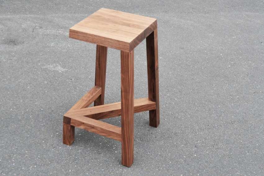 - Дабы табурет был устойчивым, ножки должны располагаться параллельно под 10-градусным уклоном. Проследите за тем, чтобы торцы перекладин и фанерной накладки расходились.