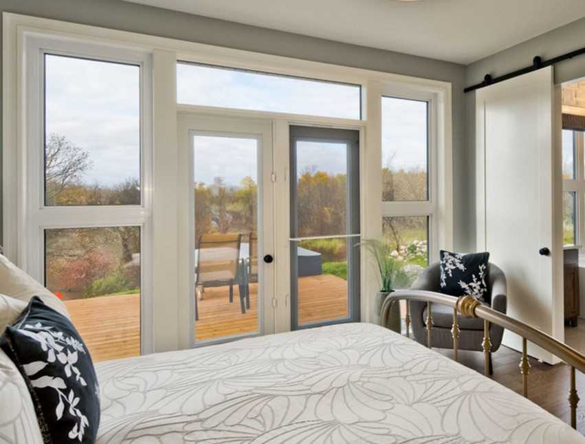 В дизайне спальной комнаты с белой кроватью такой шкаф играет одну из основных ролей смысловых акцентов, которые имитируют городские здания с окнами, встроенными в перекрестье рам, и характерные для многих старых городов. За прямоугольной раскладкой, выполненной из белых планок, матовые стекла как бы приглашают человека заглянуть в свой мир, но одновременно надежно скрывают секреты владельцев от посторонний взглядов.