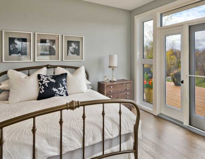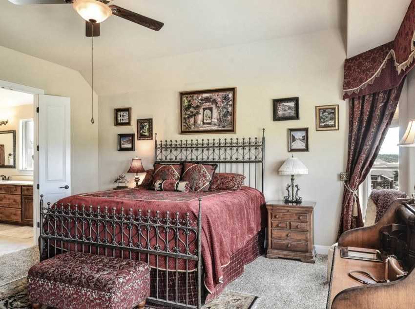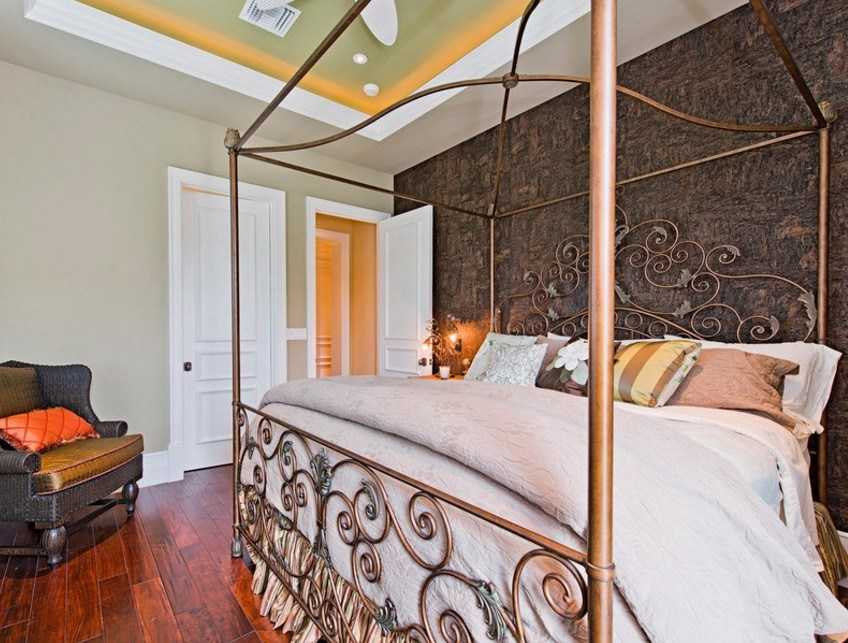 Здесь более предпочтительны комфортные, вместительные и объемные двуспальные кровати с выдвижными ящиками, деревянные резные и кованные модели, стильные конструкции из антикварной древесины или с тканевой обивкой в молочных оттенках.