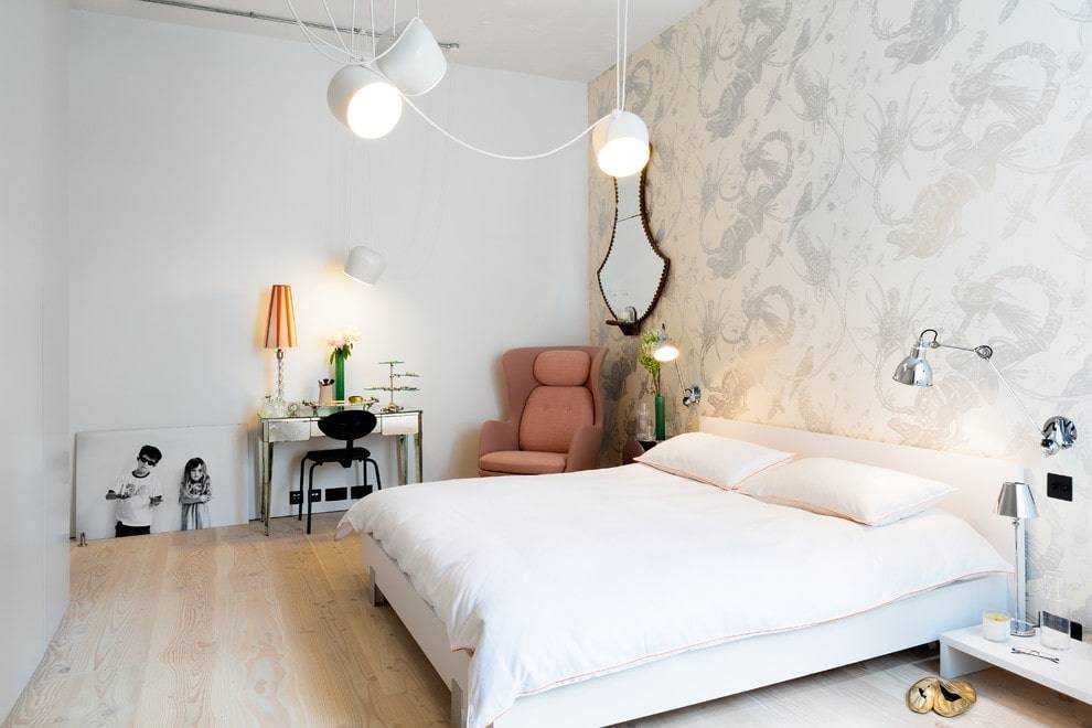 Дизайн спальни с белой кроватью