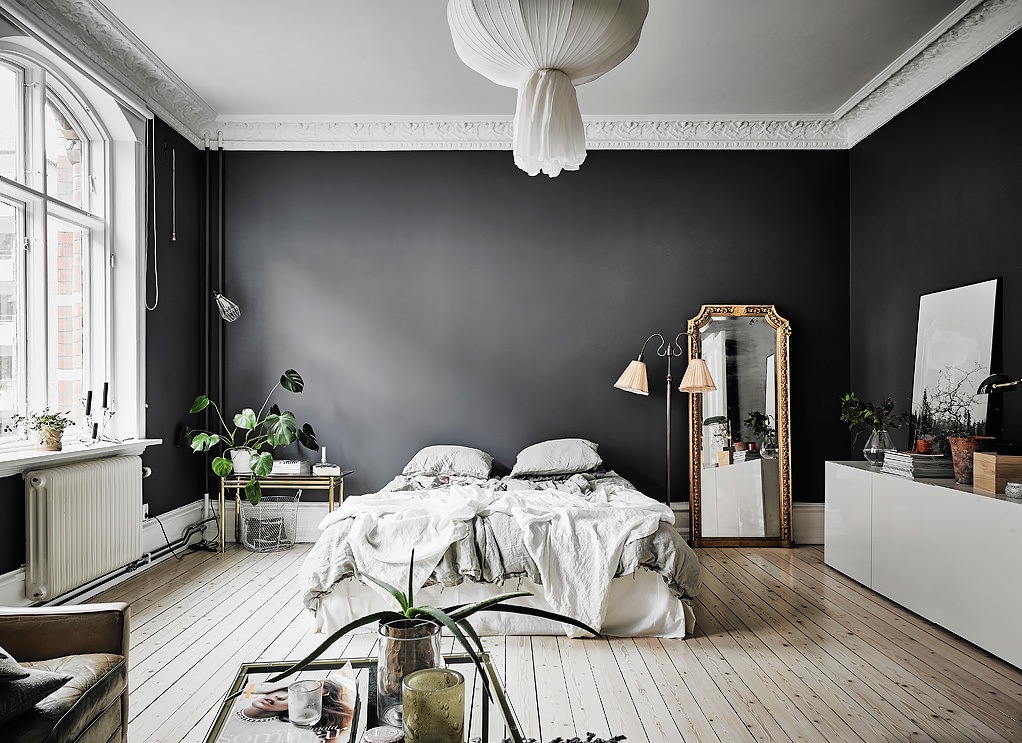 На самом деле, красивая спальня в черных тонах – это не новшество. Этот смелый радикальный оттенок присущ многим интерьерным стилям, и в той или иной мере встречается в как минимум нескольких самых популярных направлениях в дизайне.