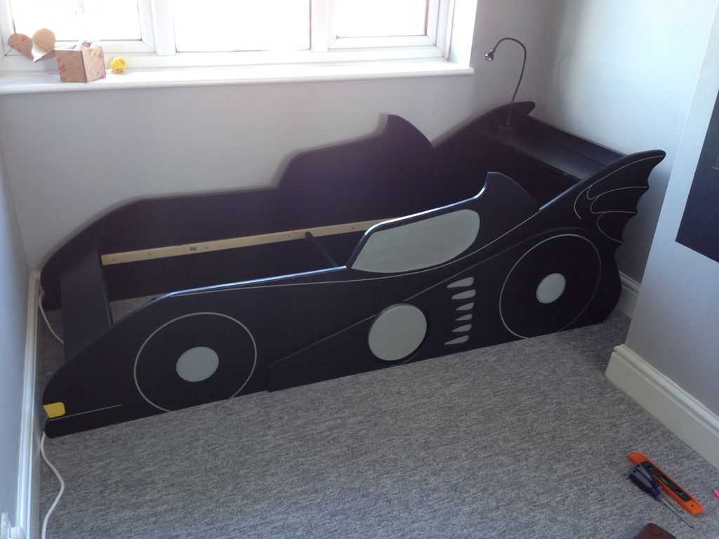 Немногие мальчишки откажутся от кровати-машины. И чтобы порадовать ребенка совсем не обязательно идти в магазин. При помощи фанеры или листа МДФ, красок и лака на водной основе, обычное спальное место превращается в воплощение мечты: детская кровать своими руками в виде бэтмобиля (или любого другого автомобиля) реализуется за неделю неспешной работы по вечерам.