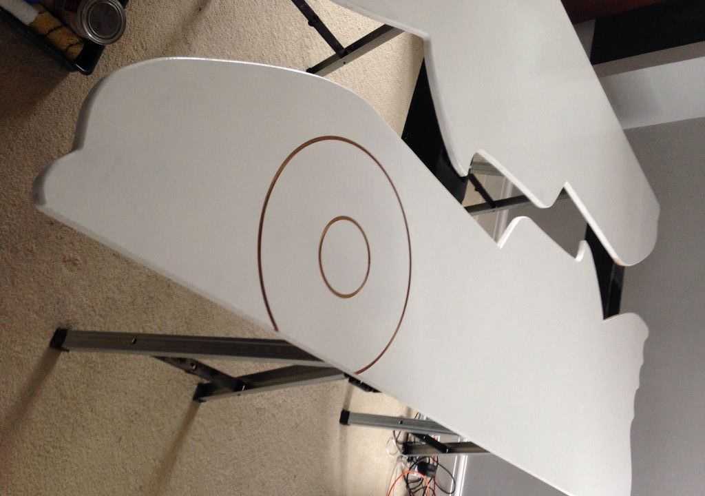 Сверяясь с имеющимся листком, переносите все линии с бумаги на фанеру. Сначала линии тонкие, после того как все более-менее прорисуете, можно очертить результирующие контуры жирной линией — вырезать будет проще. Хоть детали нужны в двойном экземпляре прорисовывать вторую нет смысла: вырезав первую, ее обведем и получим вторую.