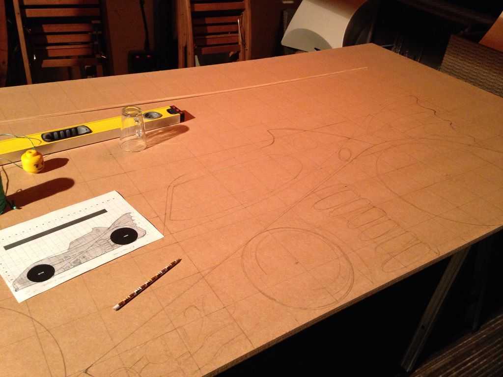 Сначала находите изображение машины, которое вас устраивает, находите программу с возможностью визуализации рисунков. Перенеся изображение, его можно разбить на квадраты со стороной в 100 мм — чтобы потом проще было перевести в реальный масштаб. Удобнее всего, если вся деталь будет ложиться в купленный вами лист фанеры или МДФ, еще лучше, если получится из одного листа сделать две боковинки… В общем, подбираете размеры, меняете очертания. После того как результат вас устроил, можно переносить дизайн на лист.