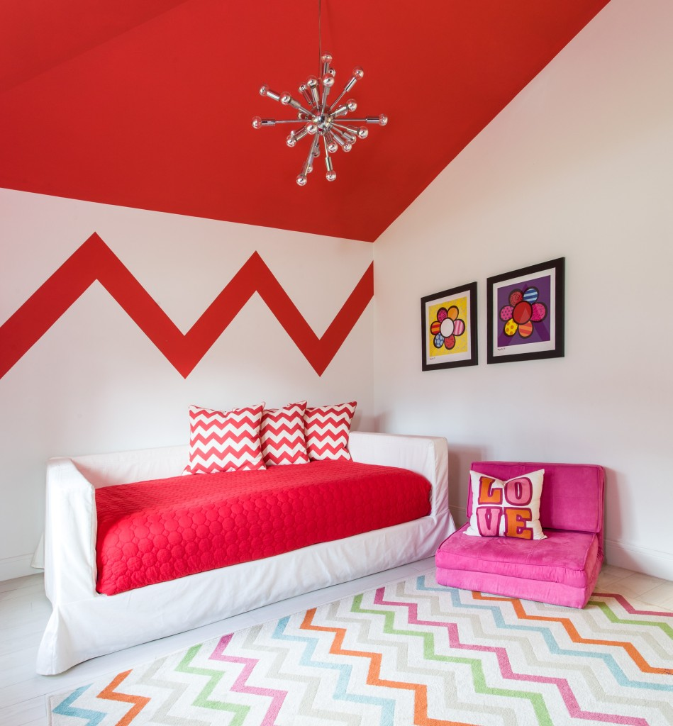 - Цвета, которые рекомендуется использовать лишь в оформлении игровой/спортивной зоны и в умеренном количестве: красный, желтый, оранжевый — они особенно хороши в оформлении комнат для стеснительных и малоподвижных детей.