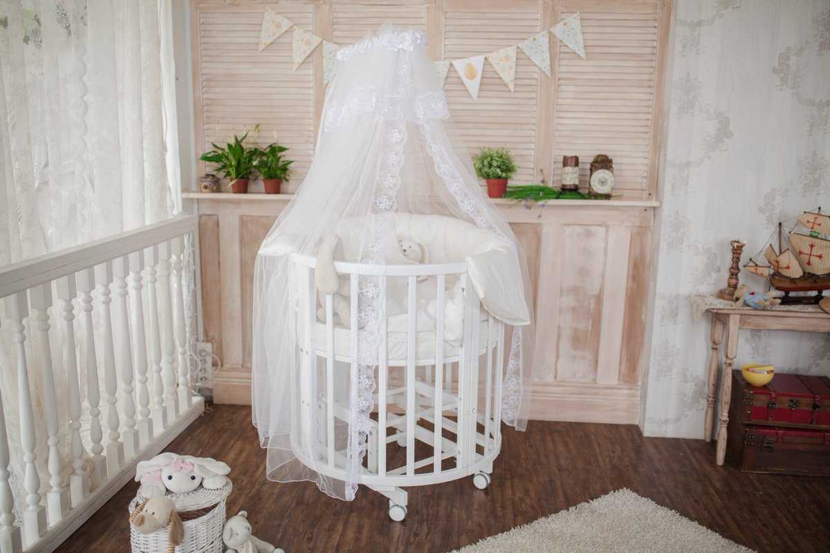 Качественная круглая кровать для новорожденных отличается прочной и устойчивой конструкцией, в которой каждая деталь выполняет конкретную функцию. Дополнительно устанавливается многоступенчатая система регулирования высоты основания, колесики и расширение для преобразования колыбельки в полноценную овальную детскую кроватку.