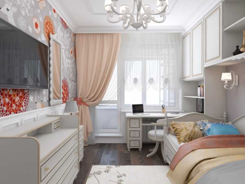 Пришедший из Франции, романтичный стиль прованс, прекрасно дополнит спальню двух девочек от 10 до 12 лет. В дизайне часто встречается натуральная сиреневая, розовая, нежно-голубая и другая пастельная палитра, цветочный принт в оформлении обоев, пастельного белья, штор и прочего текстиля. Предметы мебели в основном имеют более облегченное и светлое исполнение.