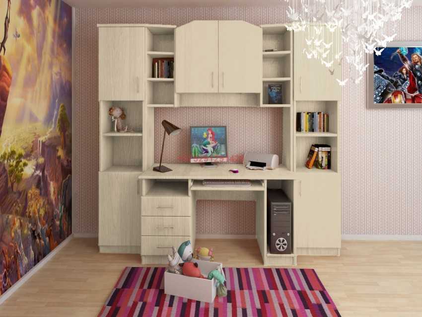 Стол. Самый обычный, стандартный стол с горизонтальной столешницей. Ребёнок может за ним играть, рисовать, делать уроки. В основном столы имеют встроенные тумбы с ящиками или полками.