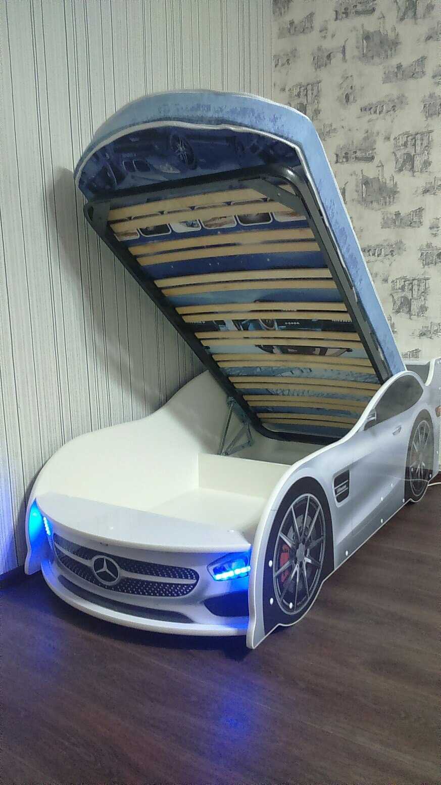 Круговая подсветка, светящиеся фары (обычно с пультом-ключом дистанционного управления) имеют не только декоративный эффект, но и помогут малышу добраться до постели при выключенном свете.