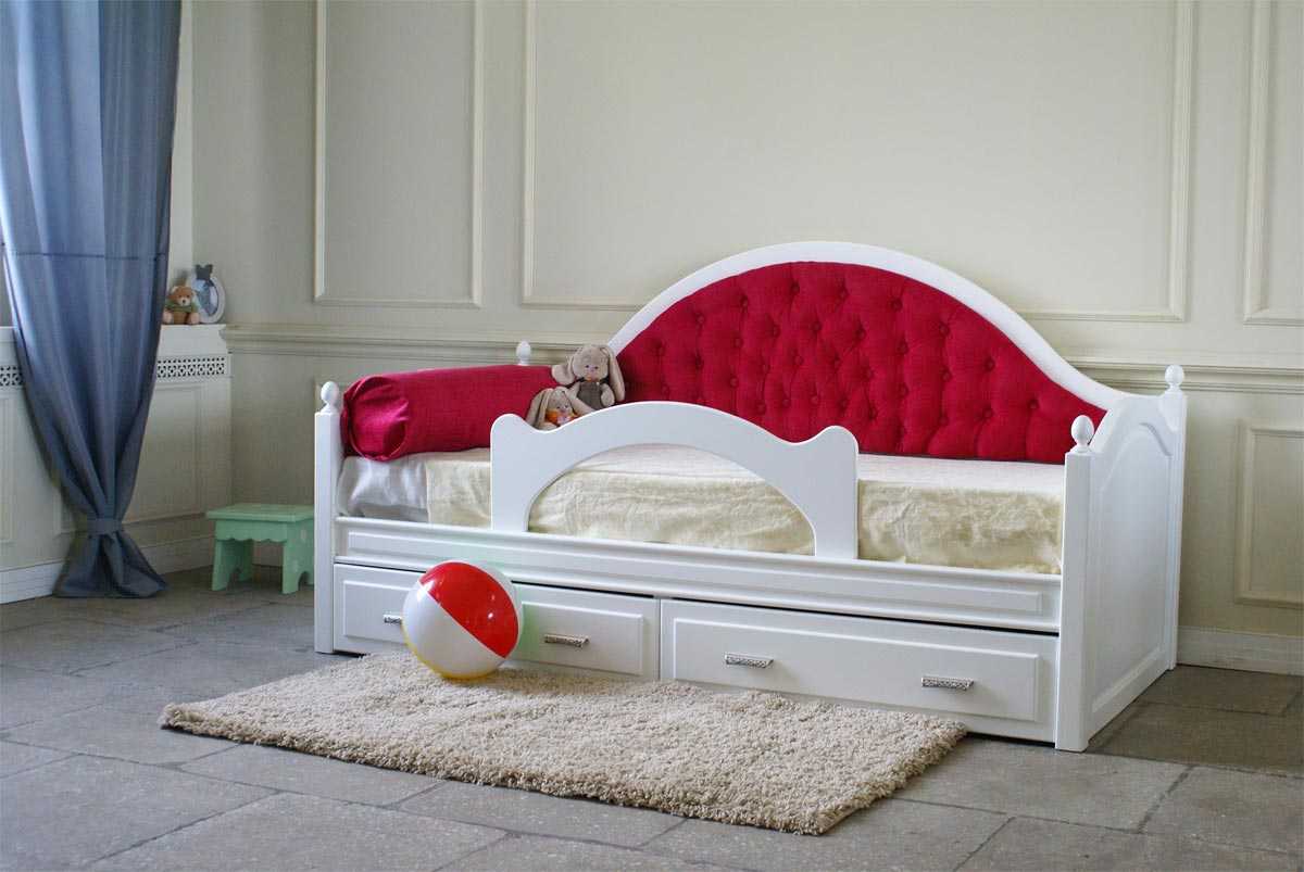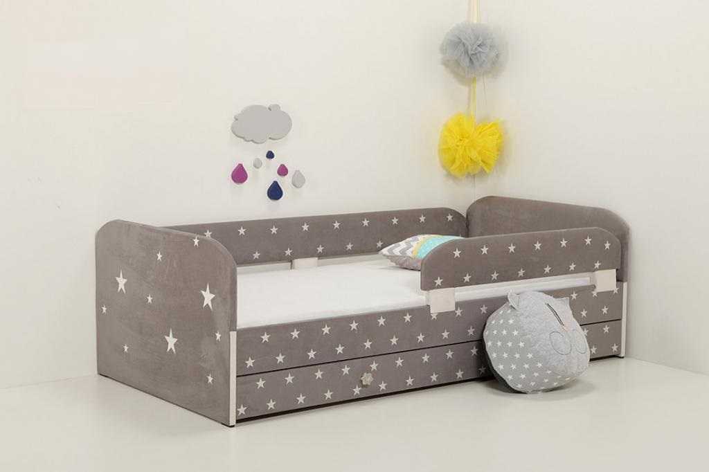 Мягкие кровати для детей выпускаются в ярких расцветках, которые понравятся любому ребенку. Выдвижные ящики – дополнительный плюс, они позволят организовать хранение игрушек и постельного белья, сэкономив пространство в маленькой комнате. Если руководствоваться советами экспертов, основные требования к такой мебели выглядят просто – мягкие углы, отсутствие выпуклостей на спальном месте, натуральная и немаркая обивка, яркий, но не кислотный цвет, оказывающий благотворное влияние на детскую психику.