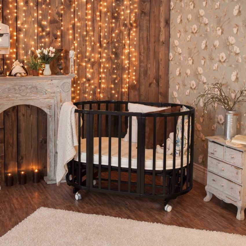 Как правило, детские кроватки имеют форму прямоугольника. Однако, в последнее время стали набирать популярность кроватки круглых и овальных форм.