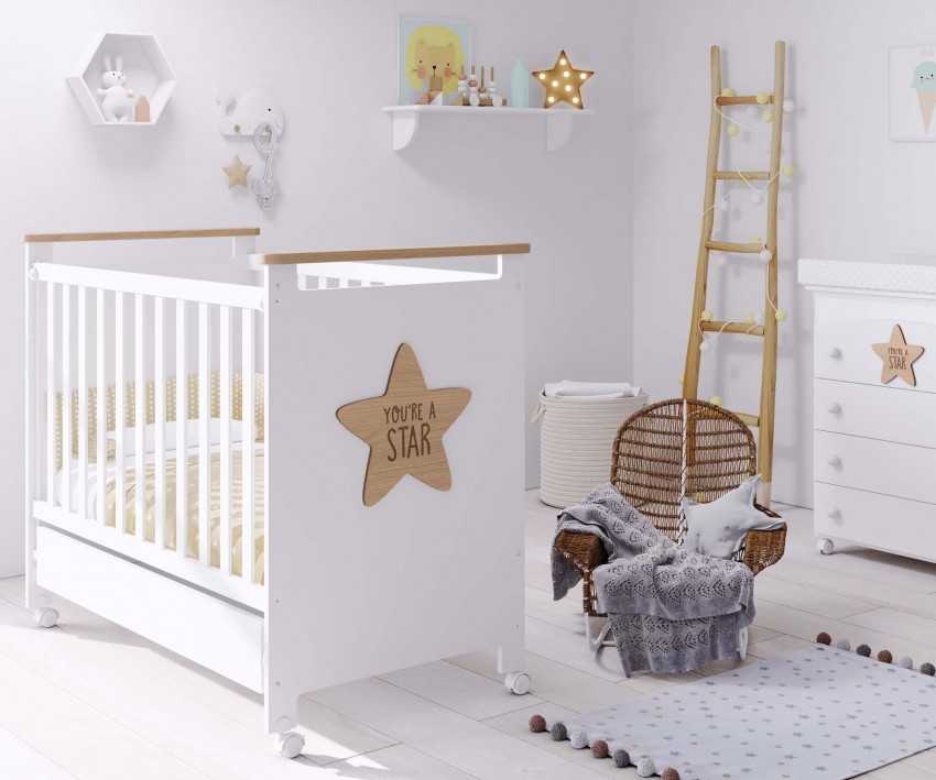 - кроватки-трансформеры, которые представляют собой комплект из нескольких блоков: сама кроватка, тумбочка или комод, пеленальный столик и т. д.; основное отличие данных кроватей — они «растут» по мере роста ребенка, при этом комод выносится за пределы кроватки, а пеленальный столик вполне может трансформироваться в письменный стол.