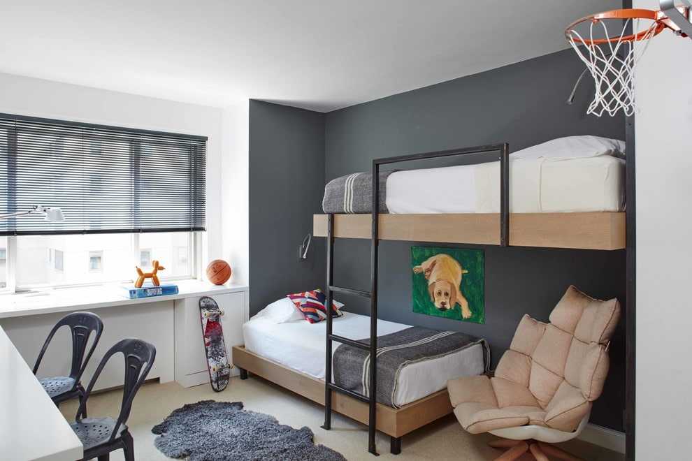 Мальчикам нравятся оригинальные конструкции, совмещенные с рабочей зоной или спортивным комплексом
