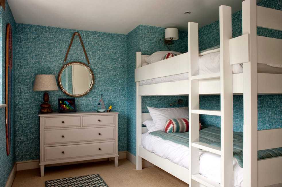 Светлые тона. Наиболее популярны, поскольку зрительно делают комнату больше и светлее. Если материал конструкции – дерево, МДФ, ДСП, то прекрасно подойдут светлые бежевые оттенки с мягкой текстурой. Светлая двухъярусная кровать будет уместна в помещении с плохим освещением.