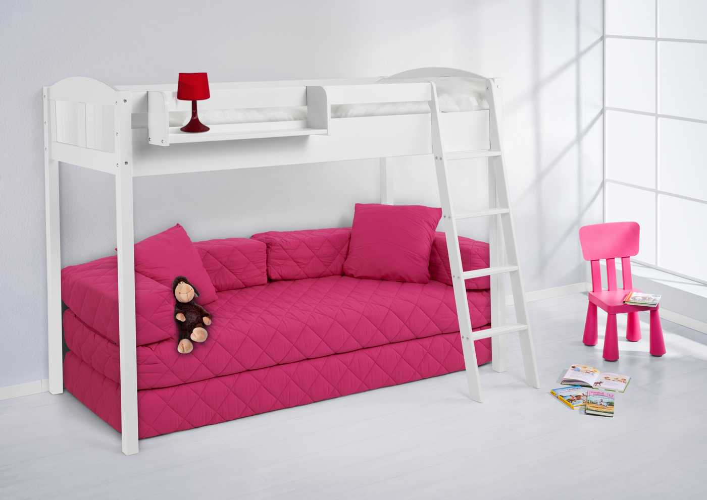 Установка снизу кровати чердака для девочки мягкой мебели такой, как диван, позволяет получить комфортное место, где ребенок любого возраста сможет отдохнуть, почитать книгу. Производители предметов интерьера предлагают широкий ассортимент диванов. Девочкам дошкольного возраста больше подойдут модели нестандартных форм. Это может быть диван в виде животных, персонажей сказок, мультфильмов. Такая мебель, безусловно, понравится любой девочке. Классическая прямая форма дивана отлично подойдет для девочек постарше.