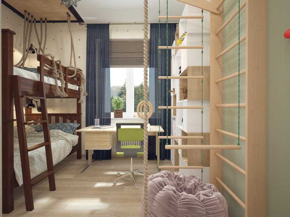 Модель с игровой зоной. Располагаться может как на нижнем, так и на верхнем ярусе и, в зависимости от пожеланий маленького обладателя, может иметь абсолютно свободное пространство либо быть оснащена дополнительными небольшими полками, ящиками для игрушек, комодом, качелями и детским спортивным инвентарем.