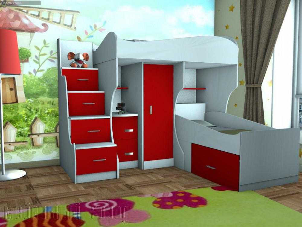 Двухъярусная мебель со шкафом соединяет три и более предмета мебели, что удобно, экономично, стильно. Спальный гарнитур может иметь не только шкаф, дополнительные места для хранения, но и другие предметы. Спросом среди населения также пользуются комплекты, которые оснащаются комодом, письменным столом, тумбой. При этом размер спального места подбирается по возрасту ребенка.