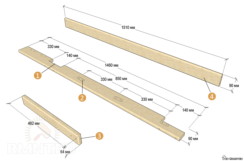 | 4 | 32х44х1850 | Продольные планки поддержки матраса (на рисунке не показаны) |