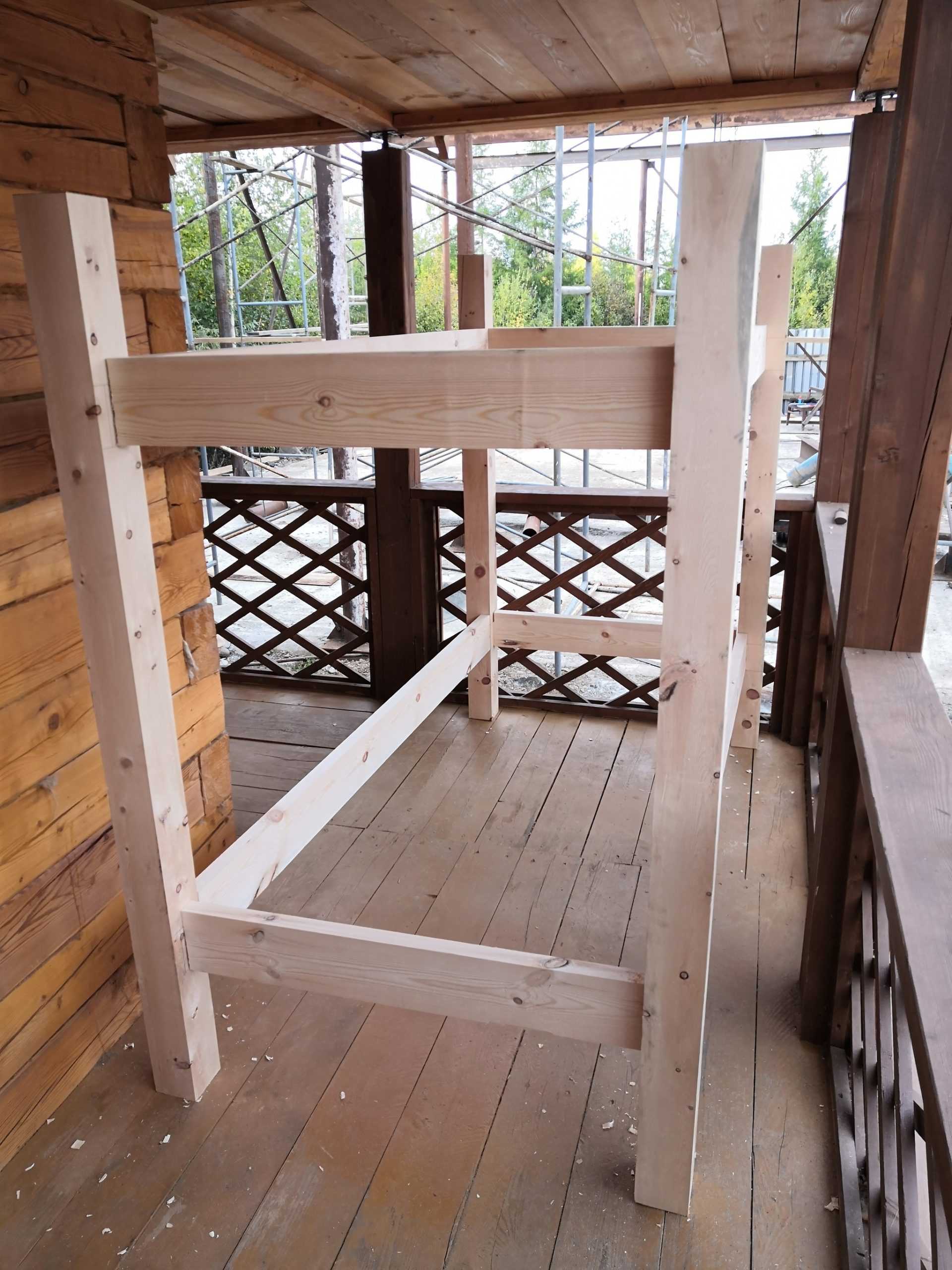 Рамы спальных мест должны быть сделаны в первую очередь, потому что их ширина определяет длину ступеней лестницы. Для изготовления рам подойдут обычные сосновые доски сечением 5×15 см.