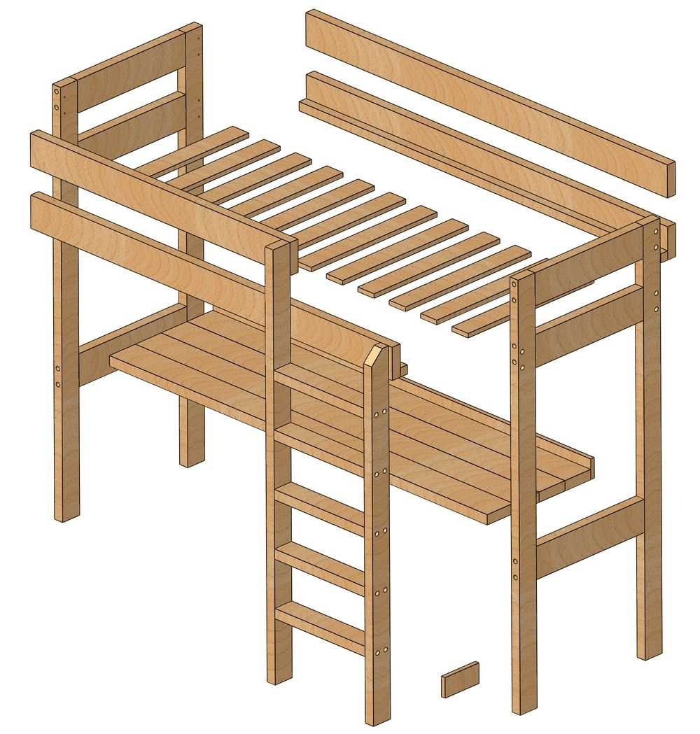 Двухъярусная кровать своими руками: как собрать функциональную мебель из дерева и металла, простые чертежи и схемы | 80+ Фото & Видео