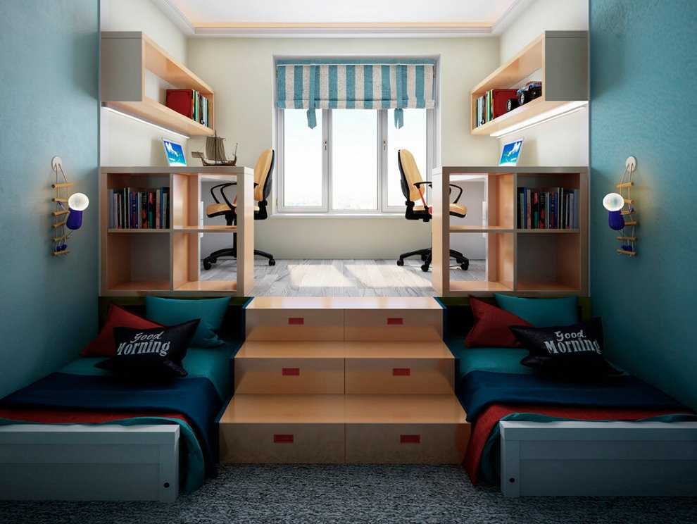Для комфортного проживания, любая комната нуждается в зонировании, особенно если в ней живут двое детей. Дизайн детской комнаты узкой и длиной в данном случае создает определенные трудности, но при использовании маленьких хитростей, вполне разрешимые.