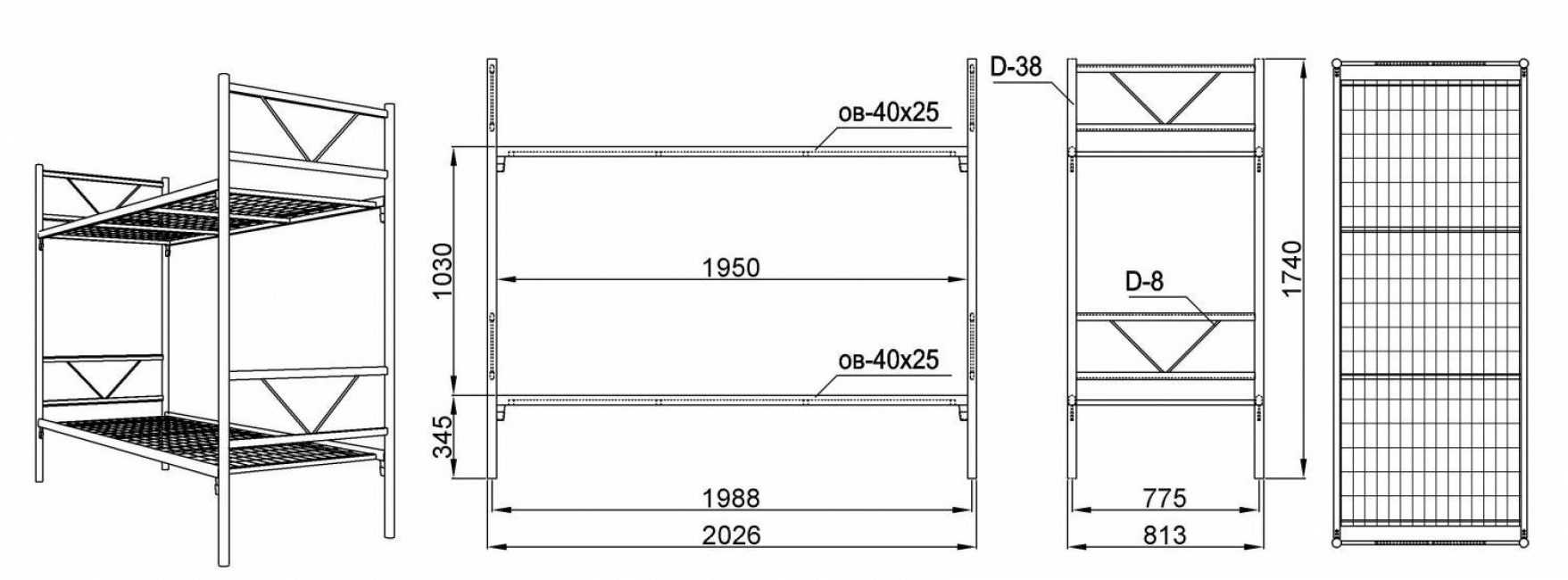 - Вертикальные рейки попарно соединяют между собой спинки двух ярусов с помощью сварки