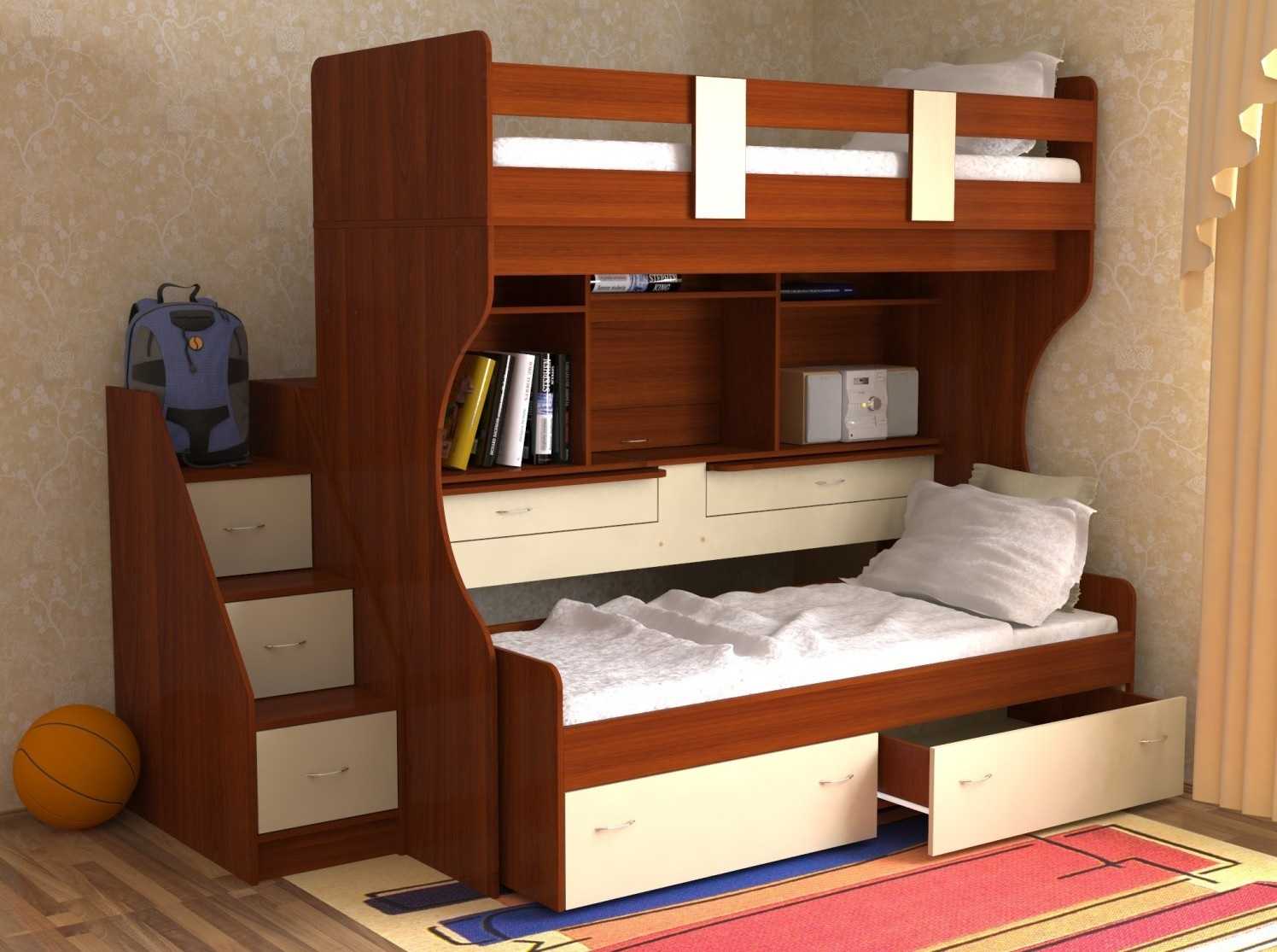 Вид и размер кроватей зависит от предназначения, возраста детей, их предпочтений и других факторов. Спальные места могут отличаться шириной. Она не зависит от возраста ребёнка, так как обычно малыш спит внизу, а его старший брат или сестра на верхнем ярусе.