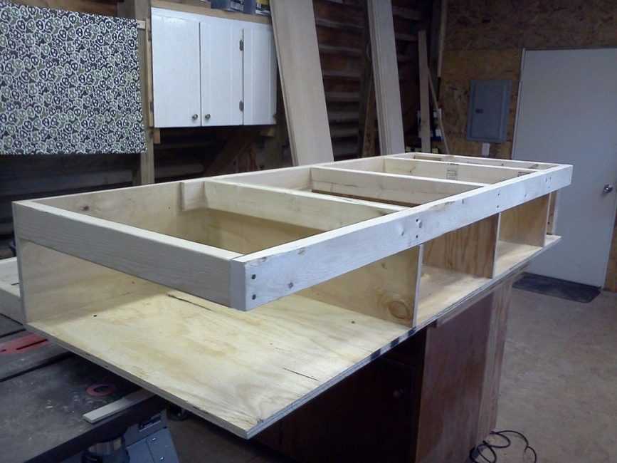- Основа. Сначала сооружают каркас, то есть короб прямоугольной формы, в который будет помещаться матрас.