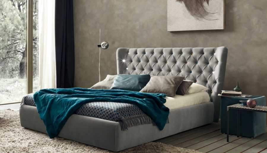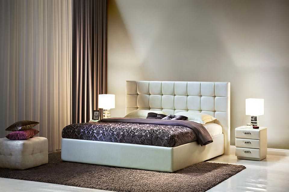 Корпус этих современных двуспальных кроватей изготавливается из дерева и традиционно обивается тканью или дорогой натуральной кожей. Конструкция также предусматривает высокое мягкое изголовье.