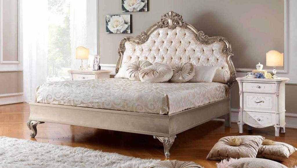 - Для классики подойдут деревянные лакированные модели с резным или мягким стеганым изголовьем.