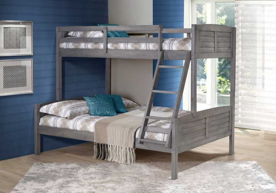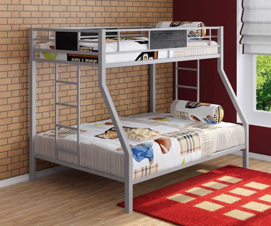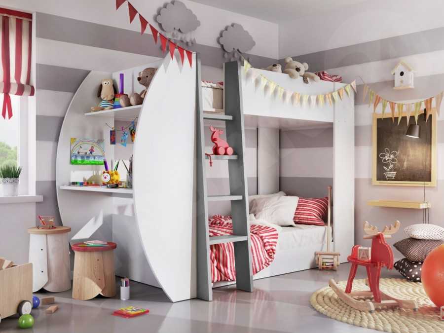 Двухъярусная кровать в классическом варианте, где на обоих этажах располагаются спальные места. При этом в целях безопасности верхний ярус лучше предложить старшему по возрасту или более спокойному ребёнку.