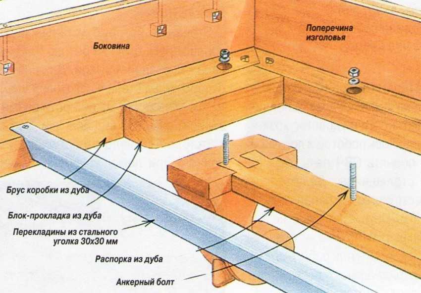 Конструкция кровати будет состоять из нескольких основных узлов: