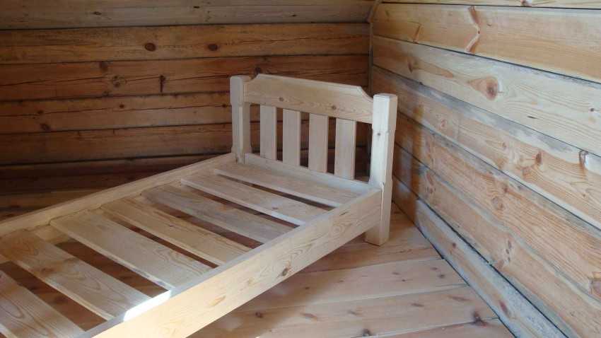 Рассмотрим подробно сборку в домашних условиях простого односпального одноярусного спального места для ребенка из дерева. Для этого понадобятся доски, брус, рейки, саморезы и болты.