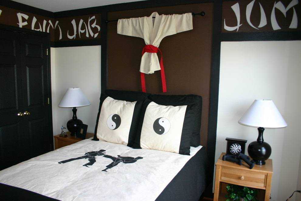 Детская в японском стиле отличается картинами с японскими пейзажами, веером на стене, японскими символами, шторами из бамбука.