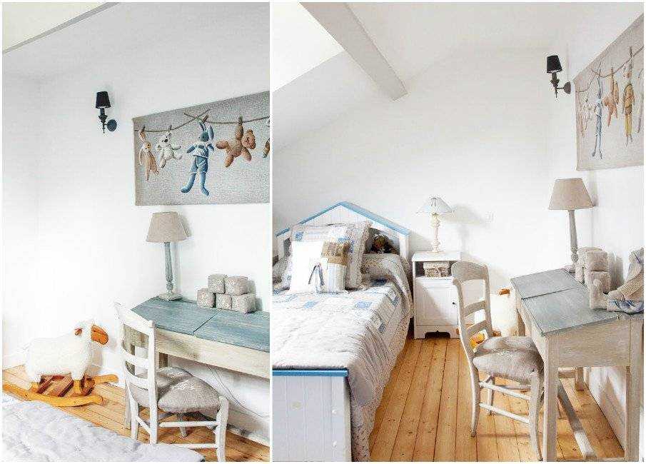 Детская для мальчишек в стиле прованс оформляется в светлых тонах. К ее особенностям относятся:
