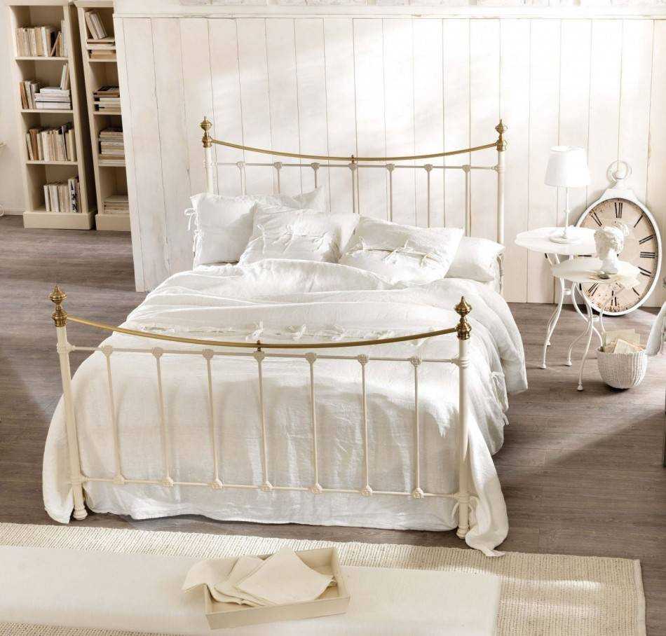 Чтобы все было особенно очаровательным и чтобы подчеркнуть характерный выбранный стиль, большинство дизайнеров также советуют положить у кровати несколько подушек, которые были бы в тон главному оттенку кровати. Все может быть декорировано цветочными рисунками или же рюшами. Красиво смотрятся кованые кровати в прованс стиле.