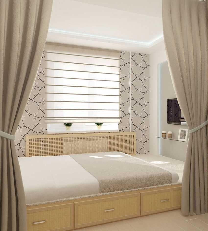 - Определить размер спального места. Он зависит не только от желаний. При выборе габаритов кровати нужно учитывать также и площадь спальни. Так, например, в маленьком помещении большое ложе будет смотреться крайне странно, к тому же оно сделает неудобным ваше перемещение по комнате.