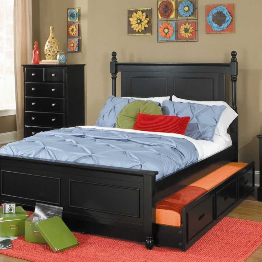 Кровати белого или черного цвета. Оборудуется матрасом и выдвижными ящиками.