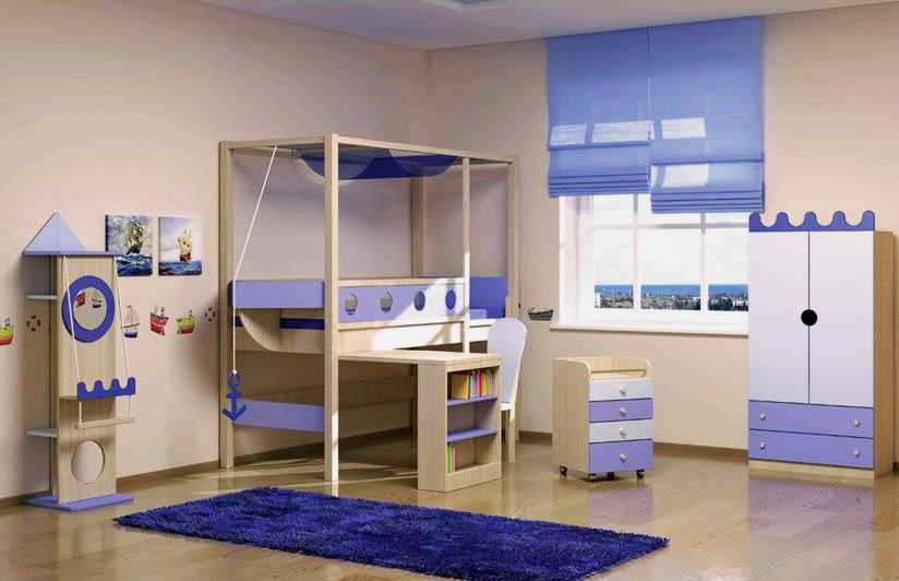 Чаще всего при оформлении комнаты для мальчиков используют синий и зелёный цвета. Лучше всего использовать комбинации этих цветов и их оттенков, например: