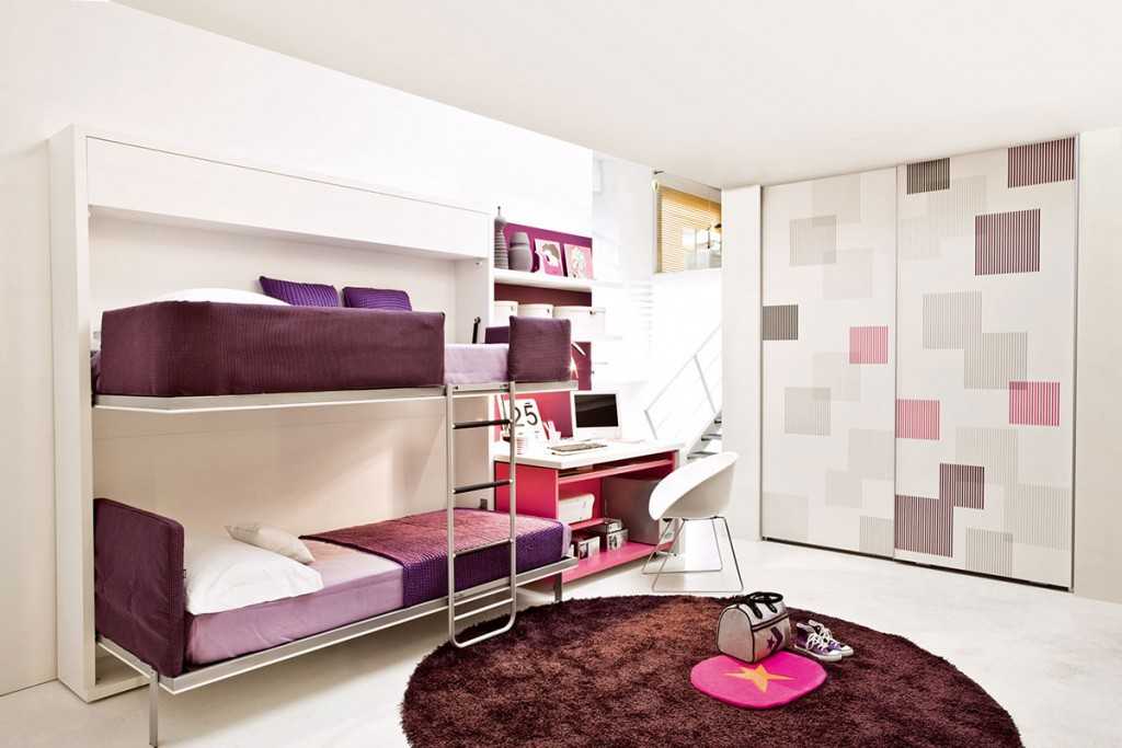 Еще один вариант, заслуживающий внимания – кровати, которые с помощью подъемного механизма, прячутся в шкаф. Воспользовавшись такой мебелью, вы сделаете комнату намного свободней в дневное время.