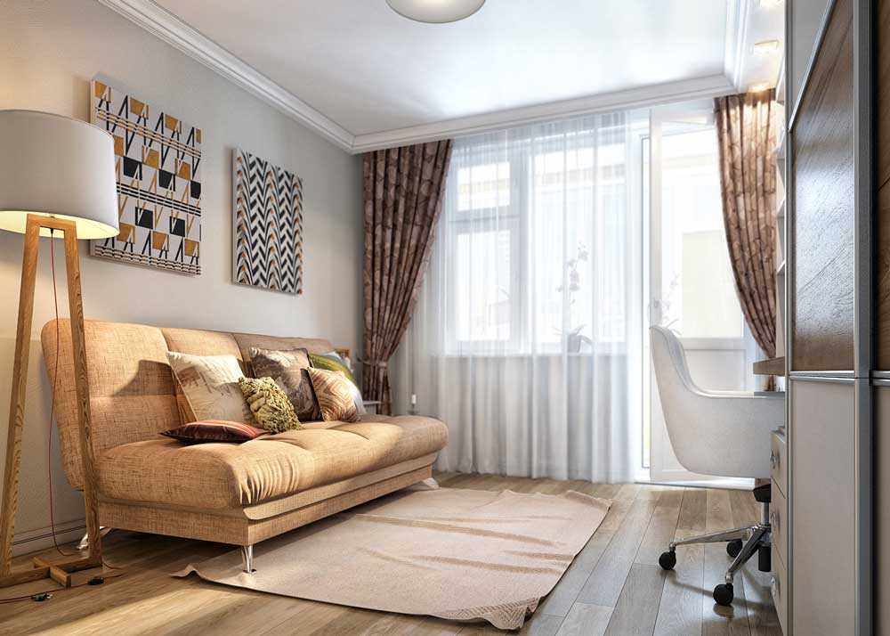 Также очень важно правильно разместить всю мебель в комнате. Не стоит приобретать громоздкие модели, гораздо гармоничнее смотрится компактная модульная и угловая мебель