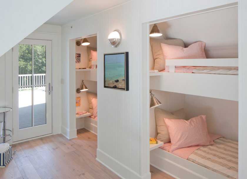 - с двойным низом для еще одного спального места. Удачное сочетание горизонтального и вертикального расположения решит многие вопросы.