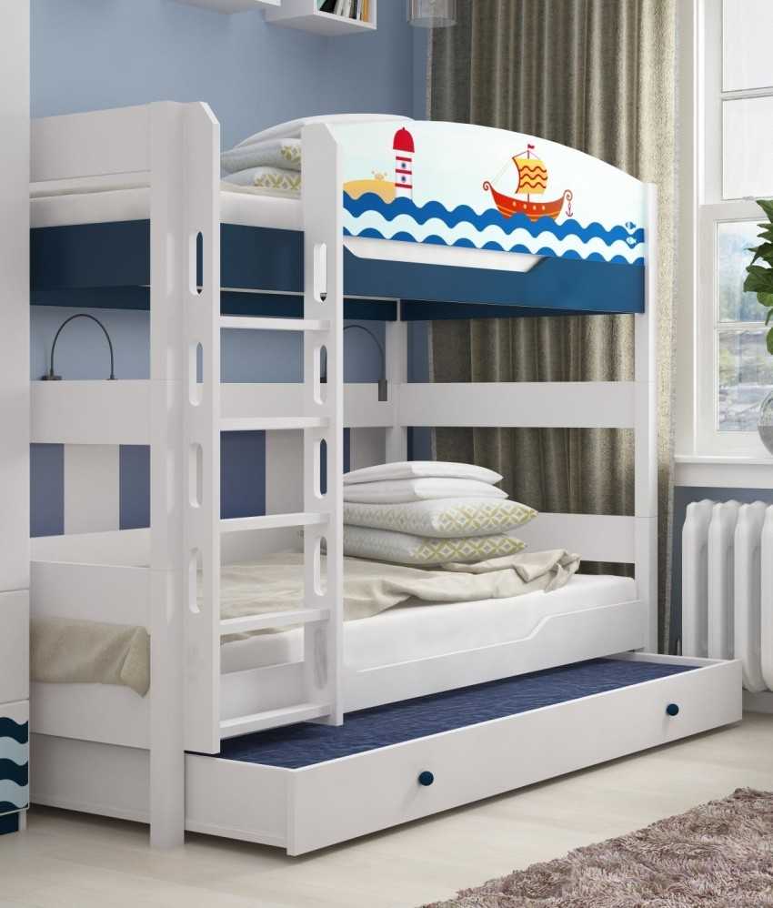 Если детки разновозрастные, необходимо исходить из правила безопасности, на верхних уровнях не рекомендуется располагать детей до 5 лет. В том случае, когда все трое детей дошкольного возраста, стоит приобрести кровать с выдвижной системой. Так, верхний уровень будет находиться на достаточно безопасной высоте.