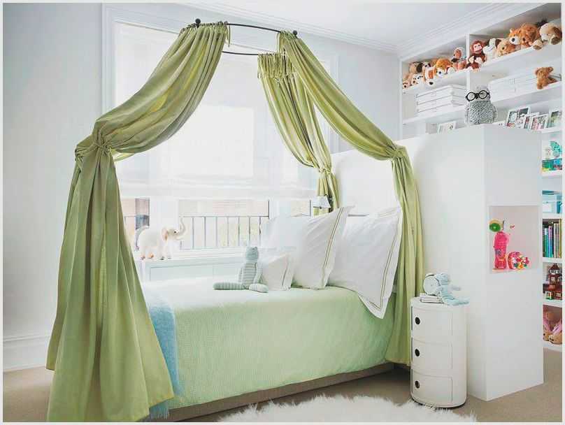 В качестве выступа крыши над местом для сна можно применять прикрепленную на опорах ткань, подвесные конструкции и композиции из текстиля, разрешающие выделить контур мебели. Балдахин над детской кроватью состоит из системы для крепежа, полотна из ткани и декоративных элементов.