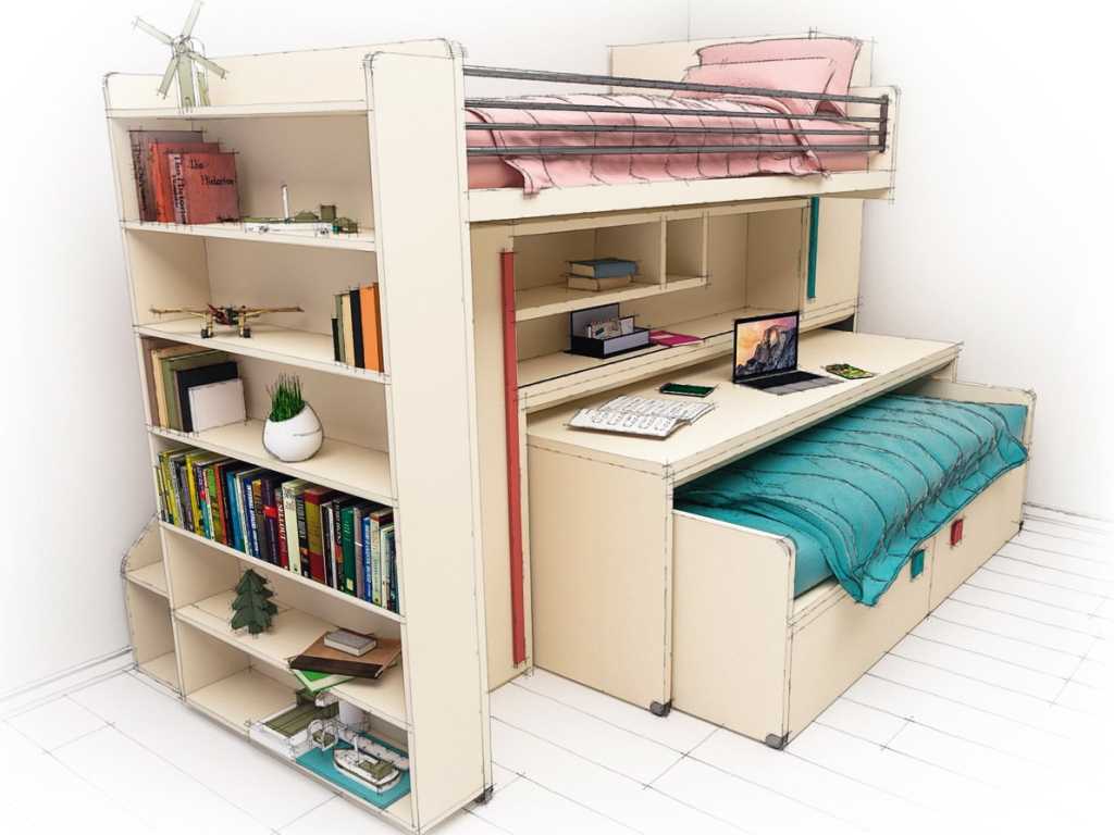 Модуль кровать-рабочий стол представляет инновацию технологий, решающую дефицит пространства малогабаритных квартир: