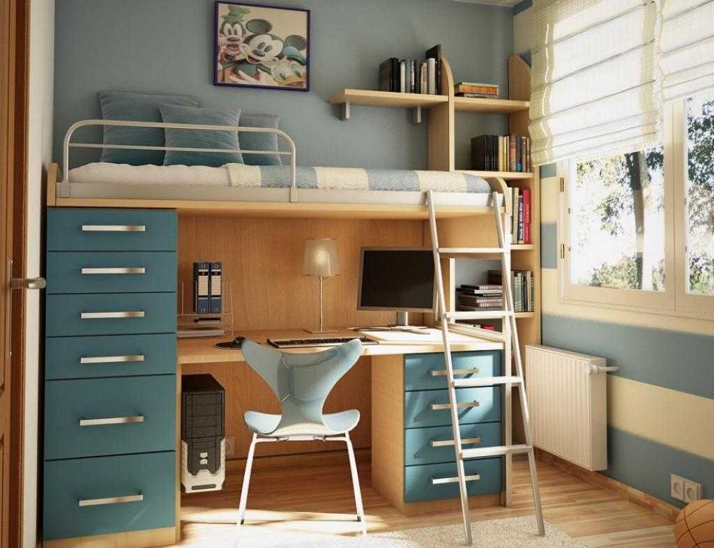 В небольшой детской проблематично разместить место для сна, письменный стол, игровую зону, тем более, если комната делится между несколькими детьми. В этом случае для подростков можно организовать верхнее спальное место, а на нижнем ярусе разместить младших. Как правило, дети с энтузиазмом воспринимают идею спать на высоте.