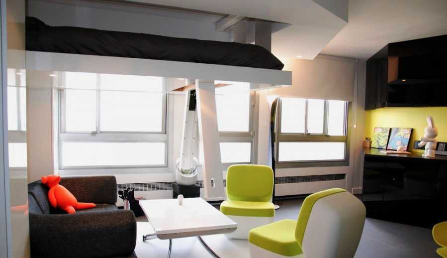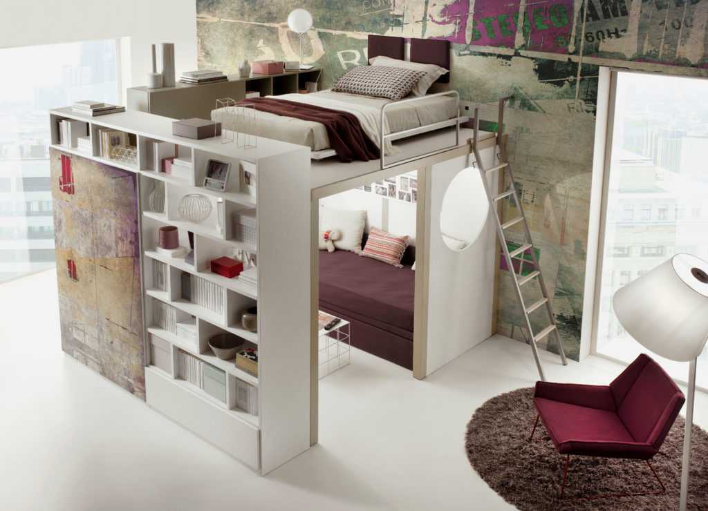 Кровать-чердак в квартире-студии как способ повышения функциональности интерьера