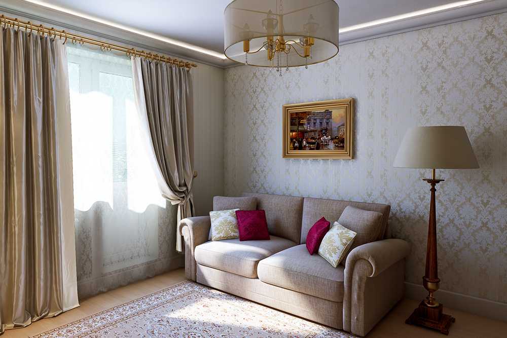 Интерьер гостиной в 17 кв. м не должен быть слишком детализированным, чтобы не перегружать и без того скромное пространство мелкими элементами. Именно поэтому дизайнеры не рекомендуют оформлять зал такой площади в классическом стиле, в котором немало места посвящено ажурному декору, торжественной и напыщенной отделке – лепнине, позолоте, резным плинтусам, драпировкам и т.д. Но можно обойтись парой традиционных предметов, тогда и классицизм доступен на столь скромной площади.